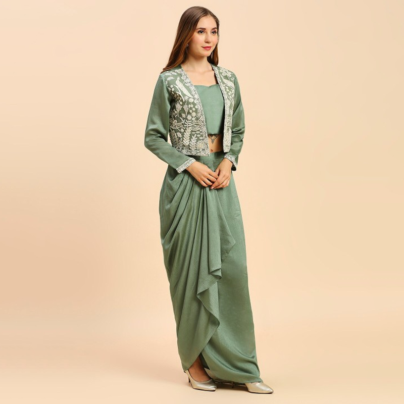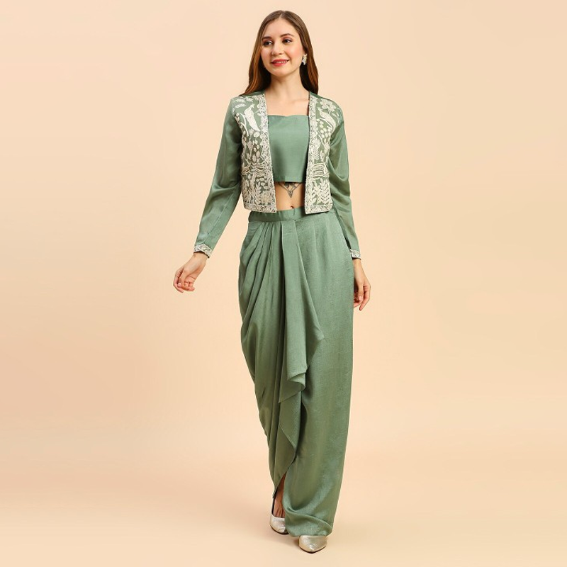 Square Neck Ready To Wear Silk Lehenga & Choli With Shrug